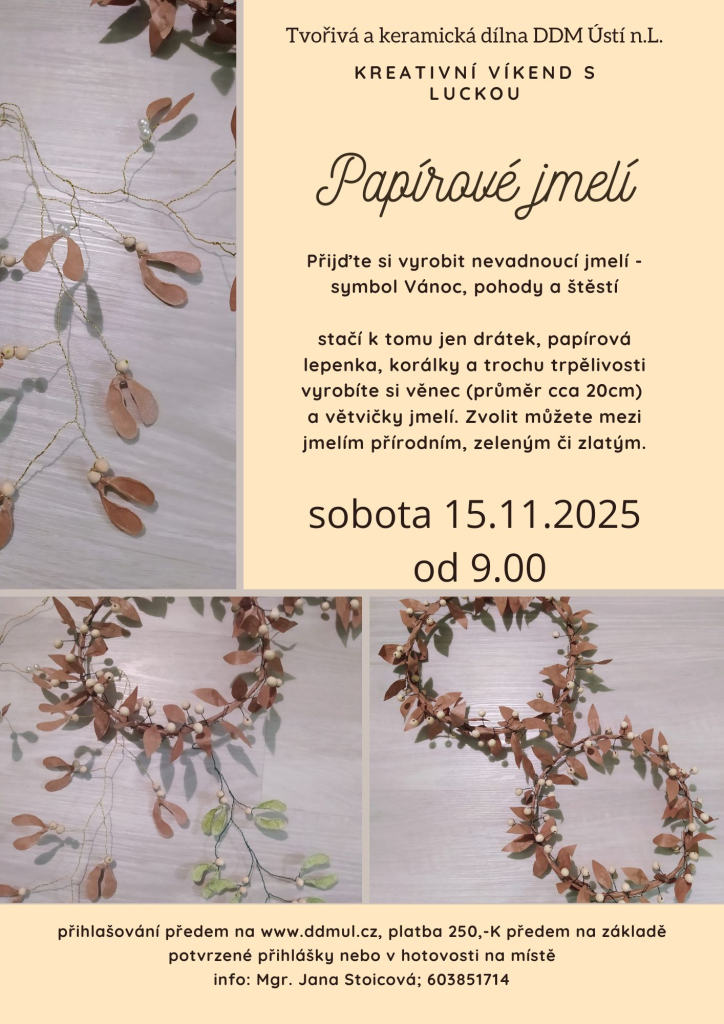 Přijďte si vyrobit nevadnoucí jmelí - symbol Vánoc, pohody a štěstí. Stačí k tomu jen drátek, papírová lepenka, korálky a trochu trpělivosti.