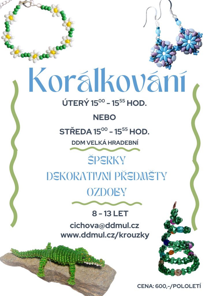 Kroužek korálkování nabízí dětem prostor pro rozvoj kreativity a fantazie, zároveň podporuje zlepšení jemné motoriky a soustředění. Účastníci si vyzkouší výrobu originálních šperků, ozdob a dalších předmětů z korálků různých tvarů, velikostí a barev. Kroužek je vhodný pro všechny, kteří mají zájem o ruční práci a chtějí se naučit techniky práce s korálky.