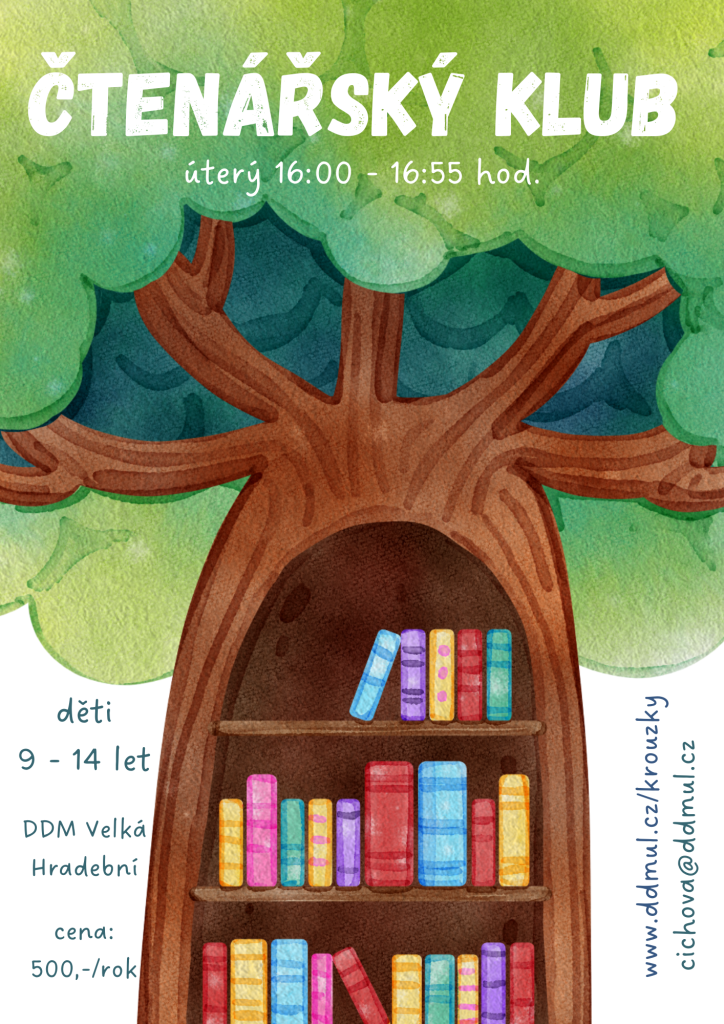 Čtenářský klub nabízí dětem zábavné a hravé setkávání se světem knih. Budeme společně číst krátké příběhy, povídat si o nich, objevovat různé autory, žánry a učit se, jak si čtení opravdu vychutnat. Součástí budou i tvůrčí aktivity – psaní vlastních mini příběhů nebo tvorba ilustrací. Hlavním cílem kroužku je posílit vztah ke knihám, rozvíjet fantazii a schopnost číst s radostí – to vše v příjemné a přátelské atmosféře.