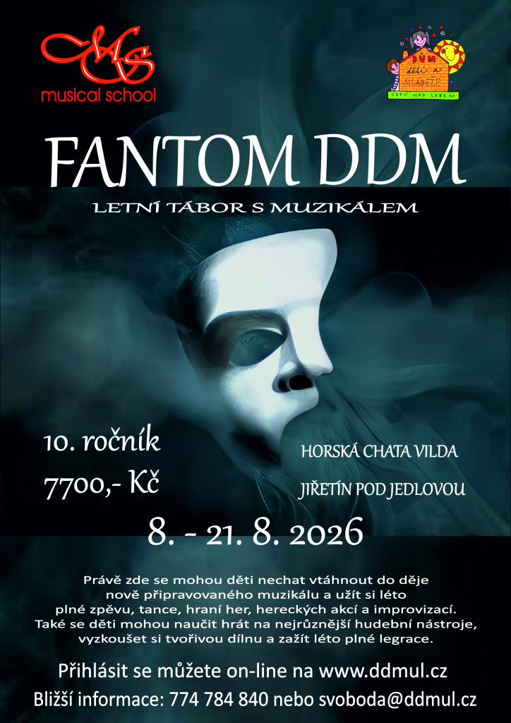"Fantom DDM" - právě zde se mohou děti nechat vtáhnout do děje připravovaného muzikálu a užít si léto plné zpěvu, tance, hraní her, hereckých akcí a improvizací. Také se děti mohou naučit na různé hudební nástroje, vyzkoušet si tvořivou dílnu ("rukodělky") a zažít léto plné legrace.