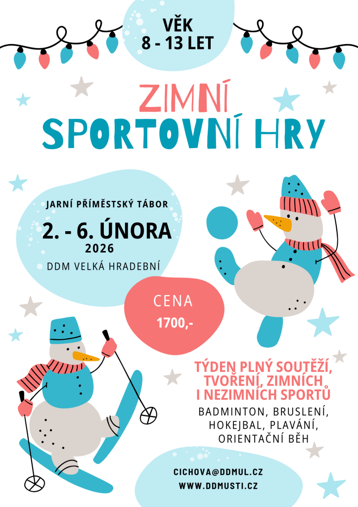 Tento tábor je určen pro všechny děti, které baví pohyb a sportovní soutěže. Pro děti je připraven od pondělí do pátku pestrý program, ve kterém na ně čeká spousta sportování, soutěží a tvoření. Ze sportů se mohou těšit na badminton, plavání, bruslení, hokejbal a orientační běh. Program se může vzhledem k počasí lehce měnit.